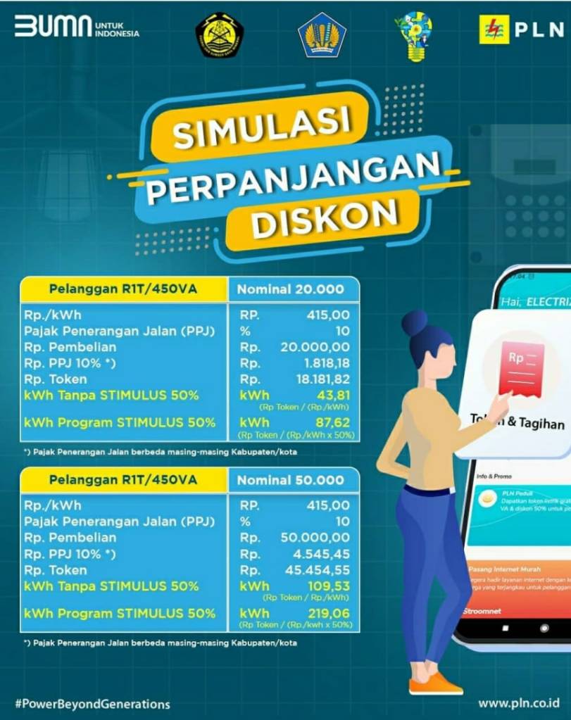 1. Rumah Tangga Daya 450 VA (R1/450 VA) – diskon 50 perseni