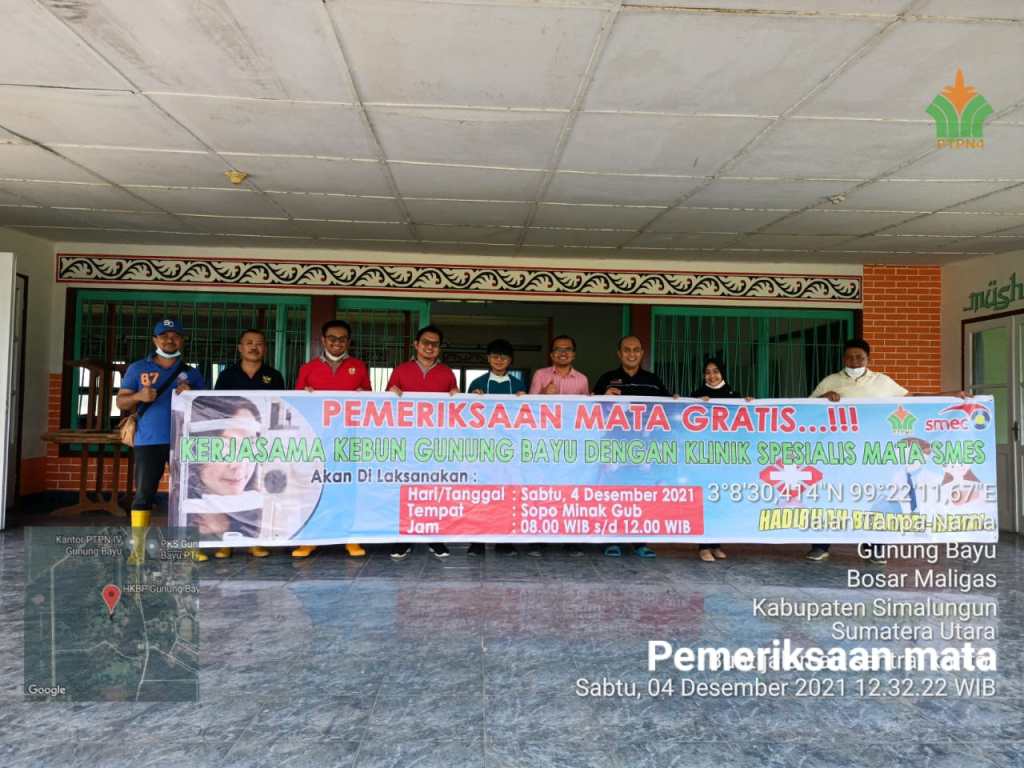 Sebagai salah satu perusahaan berkelas dunia PT. Perkebunan Nusantara IV diharapkan dapat menjadi perusahaan yang peduli akan kesehatan para karyawannya. Untuk itu Sabtu, 04 Desember 2021 PT.Perkebunan Nusantara IV Kebun Gunung Bayu bekerjasama dengan RS. Mata SMEC Pematangsiantar mengadakan pemeriksaan mata gratis yang ditujukan untuk seluruh Karyawan Gunung Bayu khususnya dan masyarakat sekitar perkebunan pada umumnya.