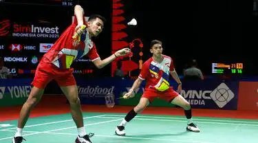 Tunggal putra Jonatan Christie dan ganda putra Fajar Alfian/Muhammad Rian Ardianto menduduki podium tertinggi usai menaklukkan lawan masing-masing di St Jakobshalle, Minggu (27/3/2022).
