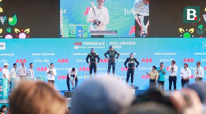 Sebelum memberikan trofi kepada para pemenang, Jokowi turut memberikan komentar terkait balapan Formula E Jakarta.