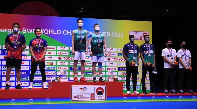 Ganda putra Aaron Chia/Soh Wooi Yik menjadi atlet Malaysia pertama yang merebut gelar bergengsi ini. Mereka menduduki podium tertinggi usai mengalahkan duo Indonesia Mohammad Ahsan/Hendra Setiawan di final, Minggu (28/8/2022).