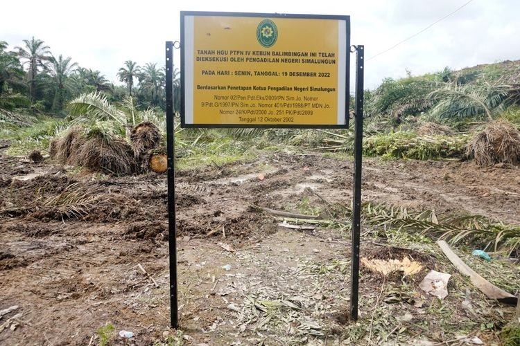 Sejak mulai dieksekusi juru sita pengadilan pada Senin (19/12/2022), hampir 5.000 batang pohon kelapa sawit yang tumbuh di atas lahan seluas 38 hektar ditebang.