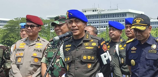 Danpuspom TNI, Mayjen TNI Yusri Nuryanto menyampaikan keterangan pers saat Apel Gelar Pasukan Penegakan Hukum di Lapangan Prima, Mabes TNI, Cilangkap, Jakarta, Rabu (13/11/2024). Foto: Rachmadi Rasyad/kumparan Danpuspom TNI Mayjen TNI Yusri Nuryanto menyampaikan perkembangan soal 4 ribu prajurit TNI yang bermain judi online. Yusri memastikan, mereka sudah mendapatkan sanksi.Ia merinci, ada tiga klasifikasi sanksi… Lanjutkan membaca Danpuspom Ungkap Penyebab 4 Ribu Prajurit TNI Main Judol